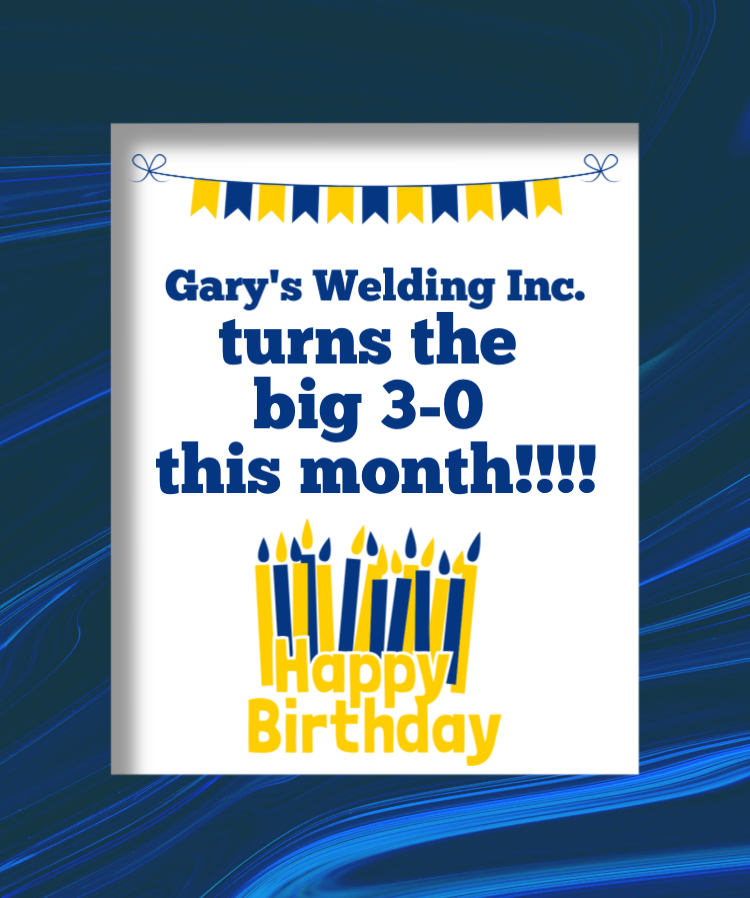Yes, that’s right…Gary’s Welding Inc. turns 30 years old this month!! Wayyyyy back in August of 1989, who would have known we would see 30? Check out our post here to see a little walk down memory lane (complete with some of our all-time favorite pictures)…